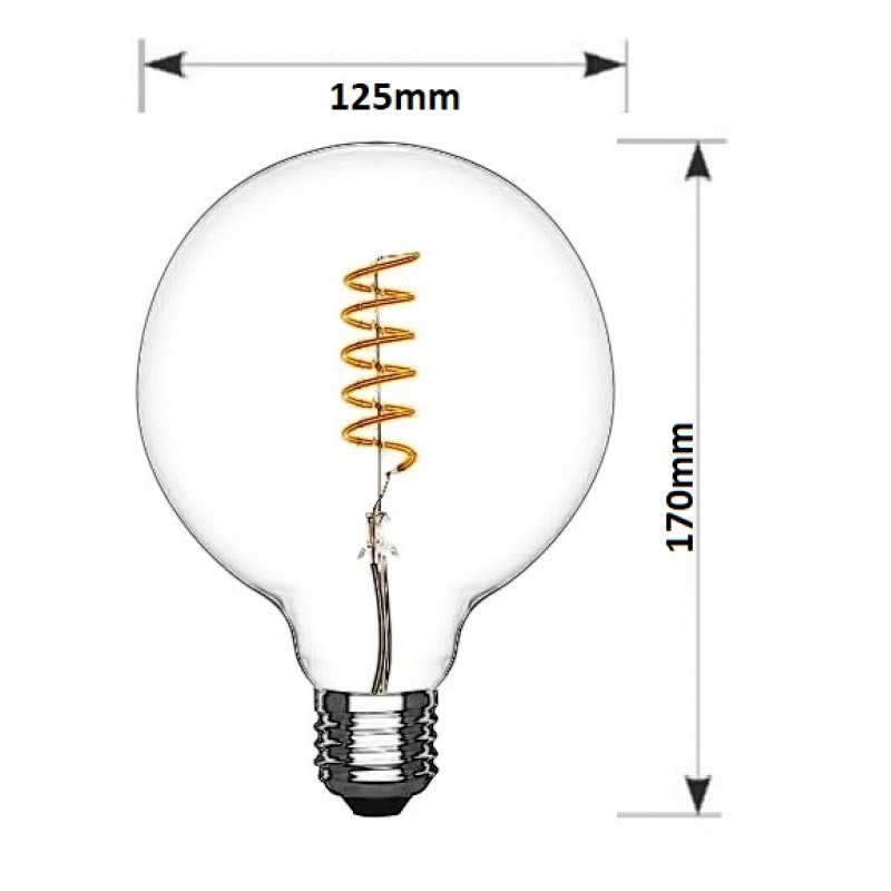 Bombillas LED Globo 125mm Gold  E27 4W 2200ºk Filamento Espiral Horizontal G125GE274W22FEH de estilo Vintage de filamento de alta calidad, bombillas decorativas vintage con las que podrás crear tus propias composiciones.