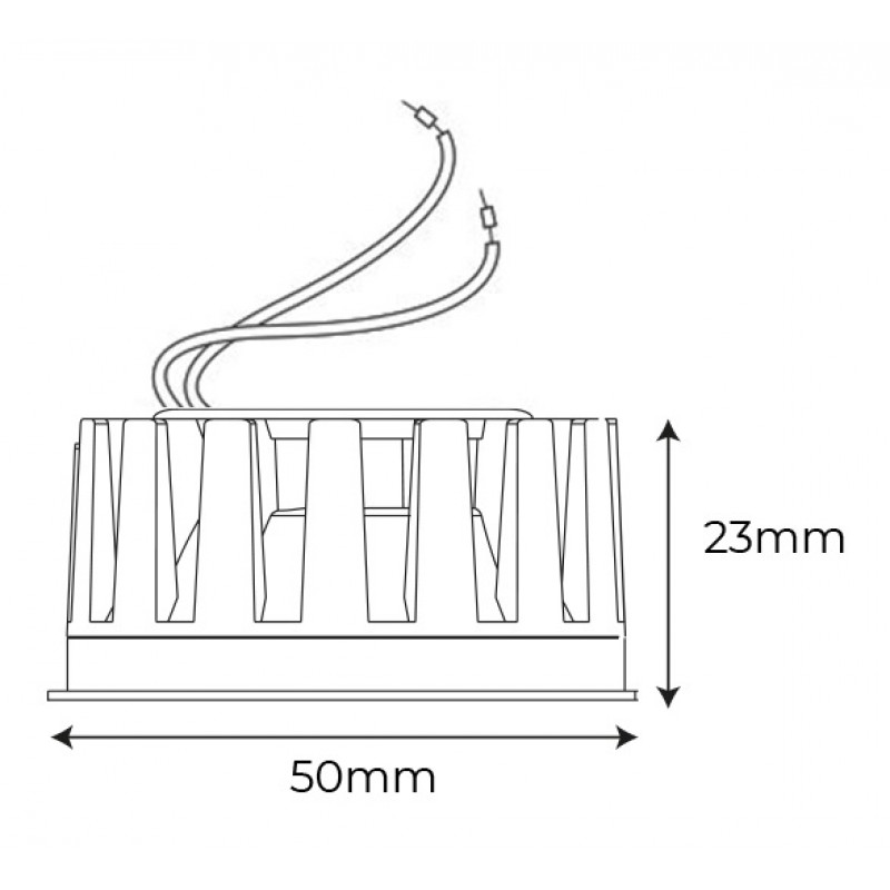 Módulo LED ES50 50X23mm 7W 38º Regulable ES507WMD, perfecta para iluminación de  interiores. Con óptica integrada y disipador de calor para aros, focos y Kardan empotrables.de pequeñas dimensiones, idóneo para techos dónde la altura no nos permite instalar nuestro módulo convencional. Obtendrá un gran ahorro en consumo energético ya que consume hasta un 80% menos que una lámpara hlaógena convencional.
