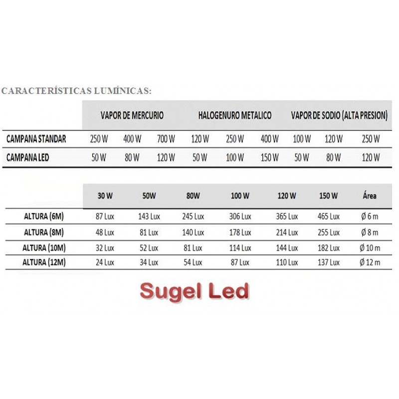 En Iluminaciones industriales o áreas de trabajo donde debe permanecer encendida durante largos períodos de tiempo durante el día y/o durante la noche. Nuestras Campanas LED son muy eficientes, con pocos gastos de mantenimiento y excepcionales en términos de ahorro de energía y el funcionamiento eficiente y estable mediante el uso de su Chip High Quality y la fuente de alimentación de alta calidad. Aplicaciones: Talleres, fábricas, almacenes, naves industriales, estaciones de peaje de autopistas, gasolineras, parkings, supermercados, etc.
