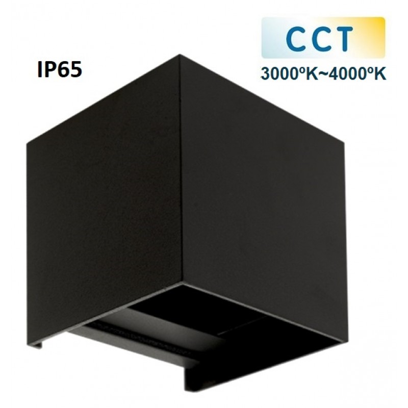 Aplique LED exterior IP65 superficie pared CUBIC 10W 1100Lm CCT Negro