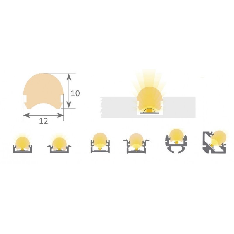 Perfil Redondo aluminio anodizado 19mm para tiras LED, barra 2 Metros