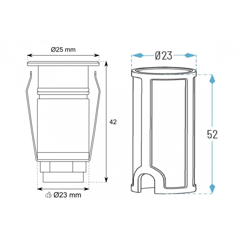 | Dimensiones | Ø25x42mm, corte 23mm (sin caja) |