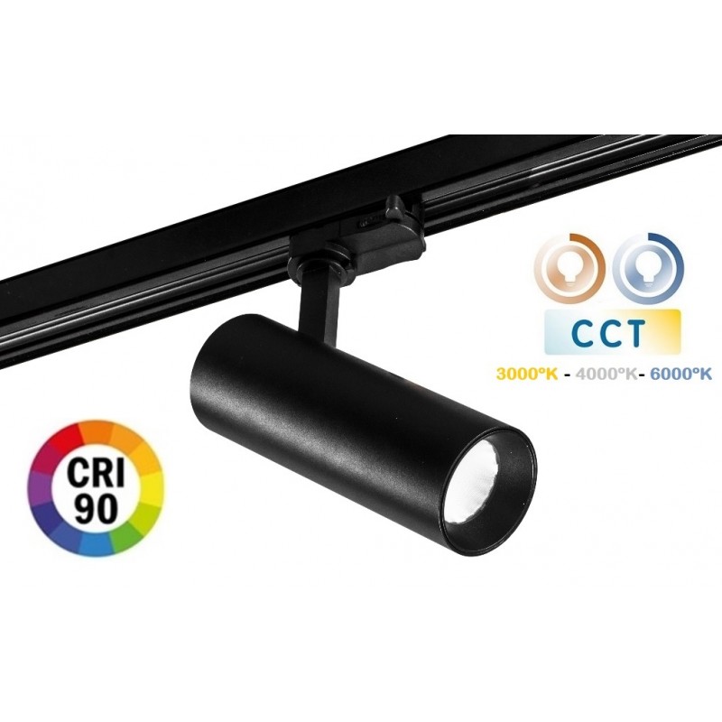 Foco Carril Trifásico LED COB MD16 30W Negro, CCT Seleccionable CRI90