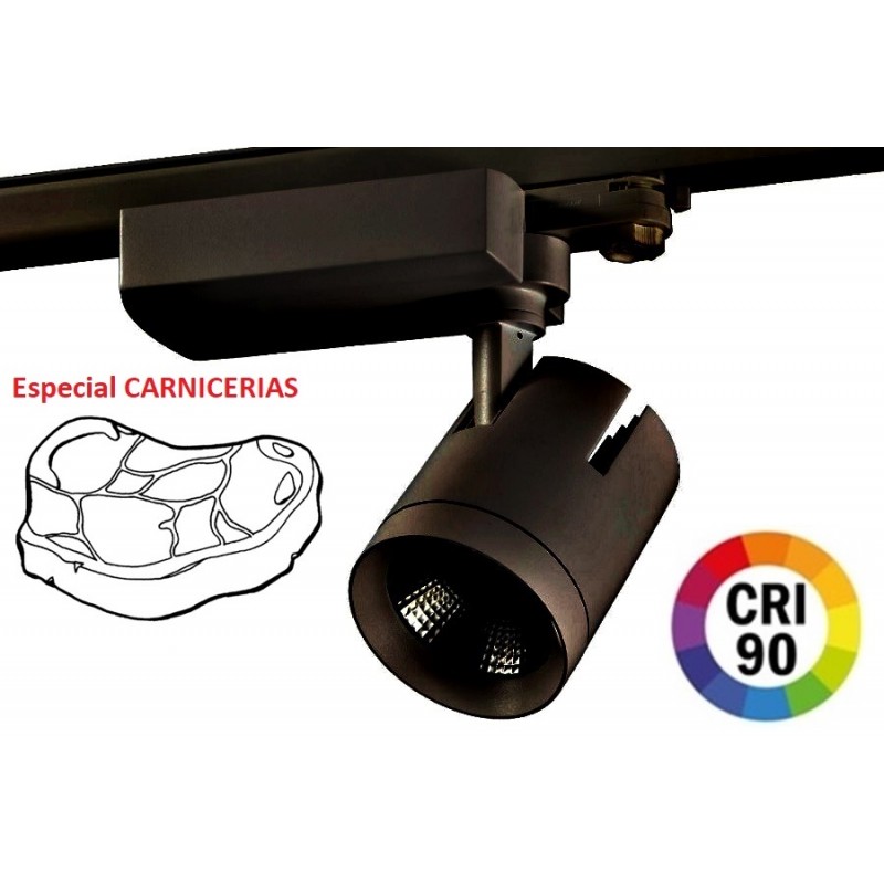 Foco Carril Trifásico LED COB MD6 40W Citizen, CRI>90 Negro, Especial Carnicerias