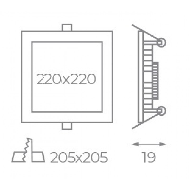 Dimensiones | 220*220*19±1mm, corte: 205*205mm |