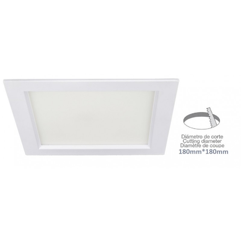 Downlight LED Cuadrado 220x220mm Blanco 25W, Corte 180x180mm. para Techos Lamas