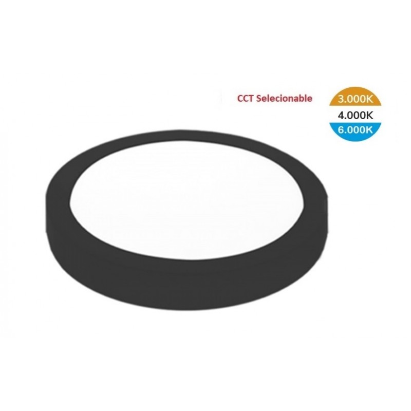 Downlight Panel LED Redondo Superficie Negro 25W CCT DPRSN25WCCT. Ideal para techos o sitios donde hay limitaciones de espacio.     Fabricados bajo los estándares de calidad europea. Construidos en aluminio y acero, con leds de alta luminosidad y electrónica de última generación.       Muy recomendado en entornos comerciales en los que se exige gran fiabilidad y rendimiento. Proporcionan una iluminación potente y homogénea, pudiendo elegir el tono de luz más adecuado a cada negocio. Todos nuestros Downlight cumplen las normativas vigentes en el entorno de la Comunidad Europea, tanto en especificaciones eléctricas como de sostenibilidad del medio ambiental y reciclaje.