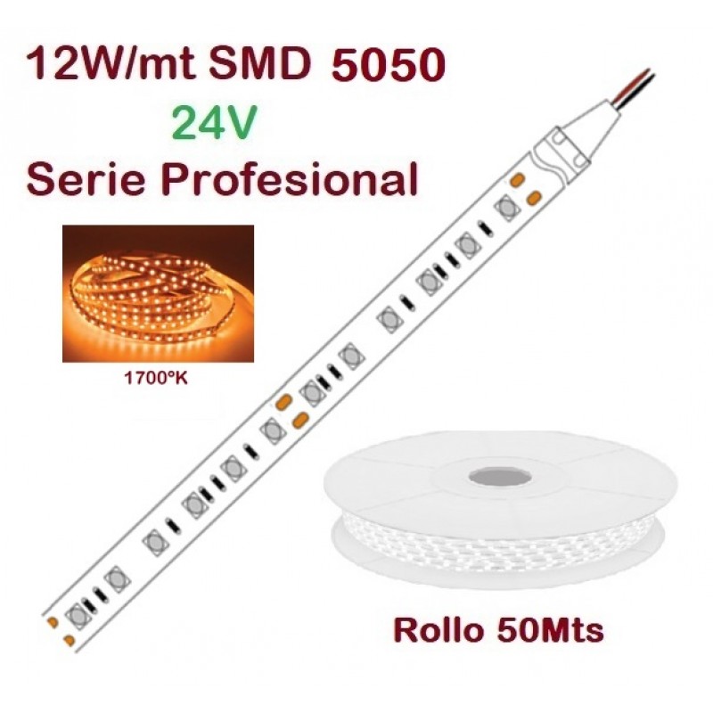 Tira LED Flexible 24V 12W/mt 60 Led/mt SMD 5050 IP20 1700ºK Serie Profesional, Rollo 50 mts