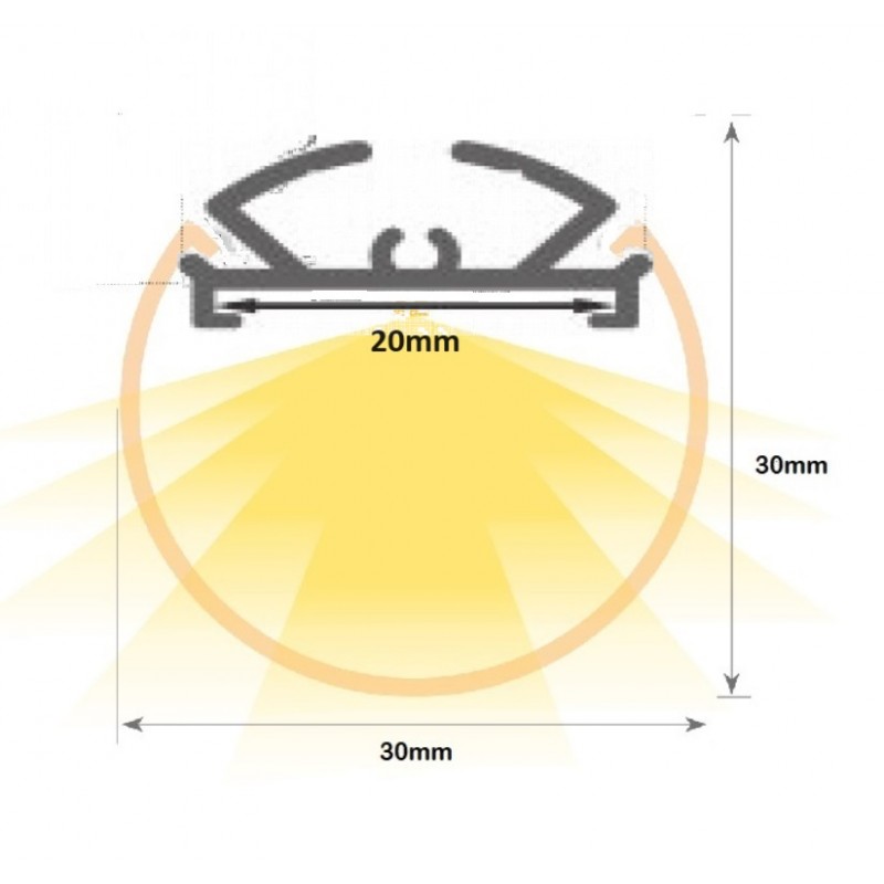 Perfil Aluminio anodizado con difusor Redondo ECO2 30mm., barra 2 Metros -completo-