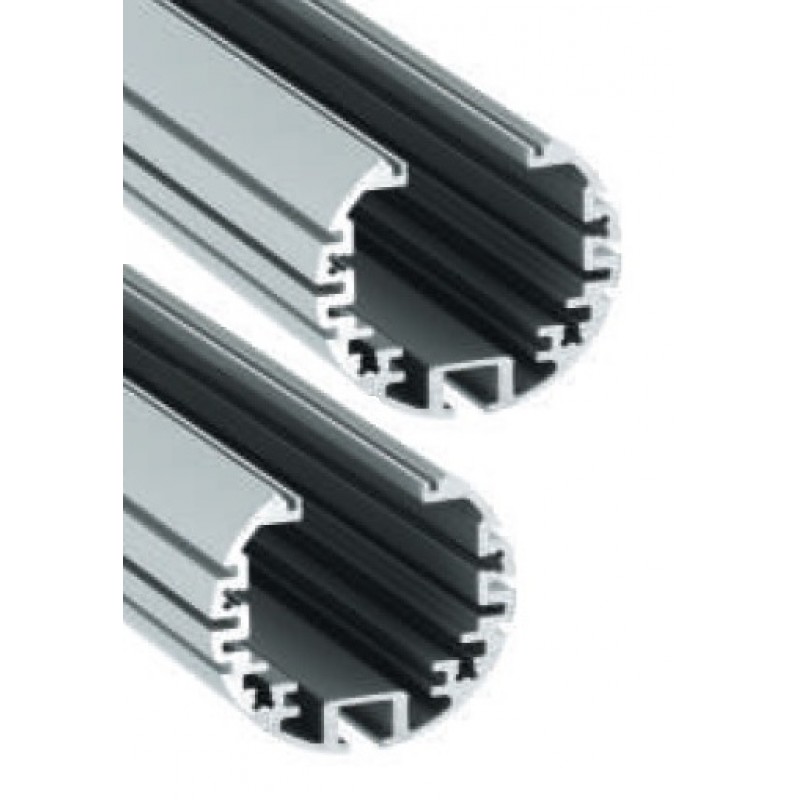 Perfil Redondo de aluminio anodizado de alta calidad, de 39mm. PR3939A6M, 6 metros (2 tramos de 3mts). Se puede escoger el tipo de difusor entre opal, glaseado, transparente ó Negro. Para instalar tira de LED.