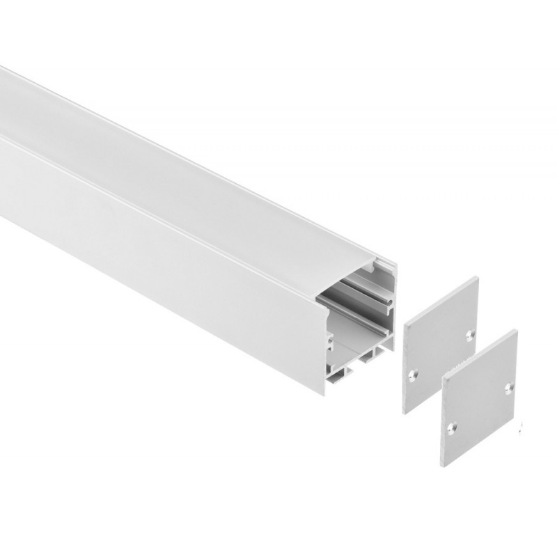 Perfil Aluminio anodizado Blanco Superficie Colgar 35x35mm. para tiras LED, barra 2 Metros -completo-