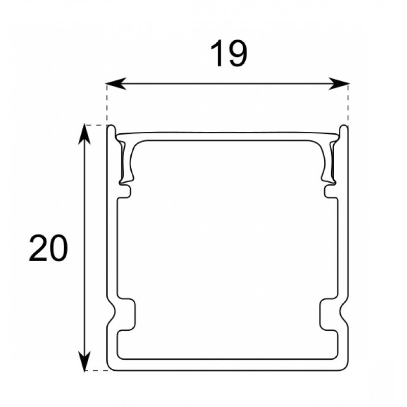 Perfil superficie aluminio Blanco U 19x20mm para tiras LED, barra 2 Metros