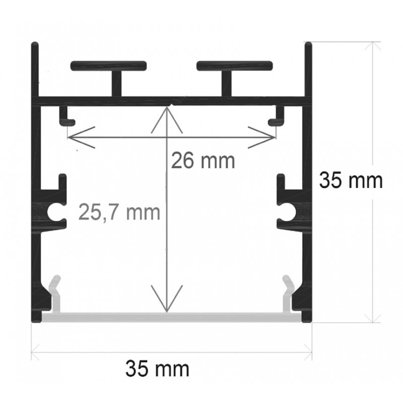 Perfil Aluminio anodizado Plata Superficie Colgar 35x35mm. para tiras LED, barra 2 Metros -completo-