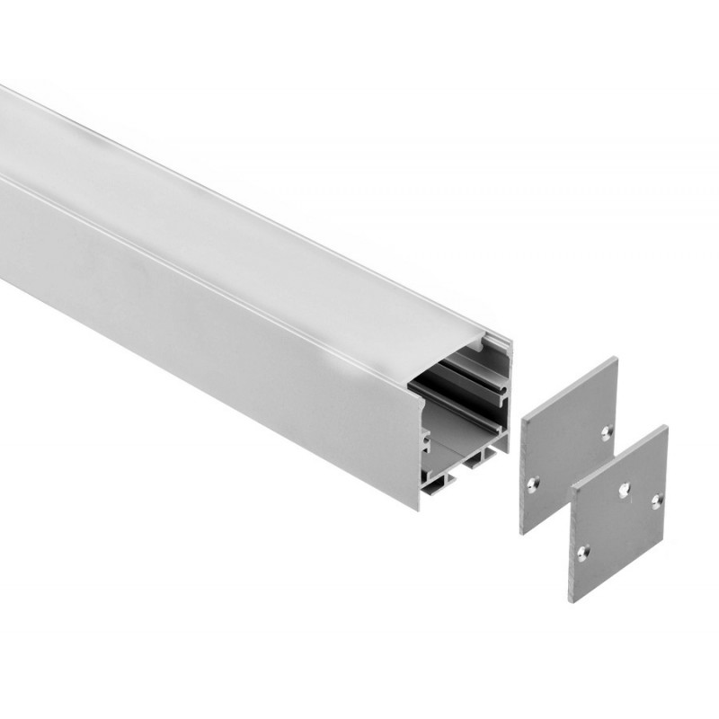 Perfil Aluminio anodizado Plata Superficie Colgar 35x35mm. para tiras LED, barra 2 Metros -completo- PSC3535P. Apto para tiras de led.