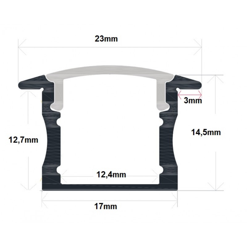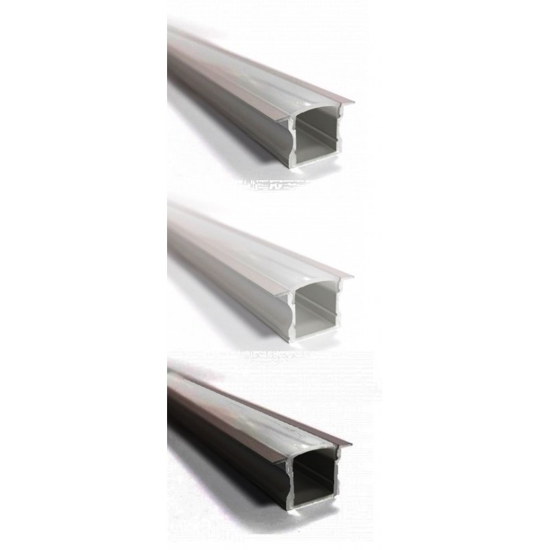 Perfil Aluminio Empotrar ECO 23x15mm. para tiras LED, barra 2 Metros -completo- Plata, Negro ó Blanco (a 6,45€/mt.)