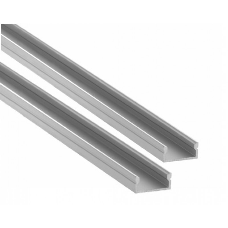 Perfil Aluminio Anodizado Superficie Plata 17x8mm. para tiras LED, 6mts (2 tramos de 3 Metros)