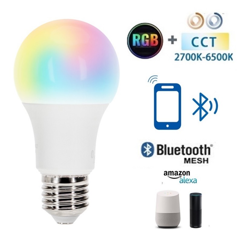 Lámpara LED Standard E27 12W RGB+CCT Bluetooth, para Smartphone y control voz