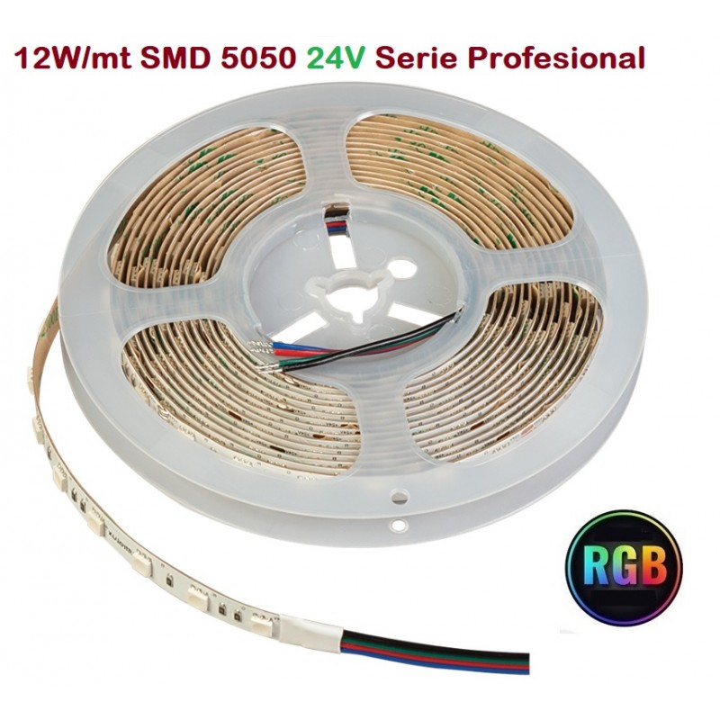 Tira LED Flexible 24V 12W/mt 60 Led/mt SMD 5050 IP20 RGB Serie Profesional, Venta por metros