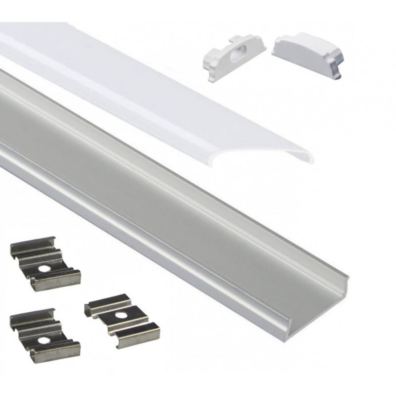 Para tira LED El precio incluye: Tira perfil, 2 tapas finales, 3 grapas fijación y difusor opal