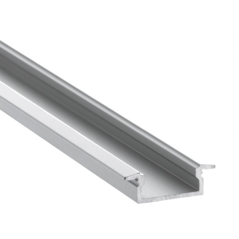 Perfil de aluminio de empotrar BASIC Plata de 23x8mm. Barra de 2 metros -completo-. Se puede escoger el tipo de difusor entre opal, glaseado o transparente.