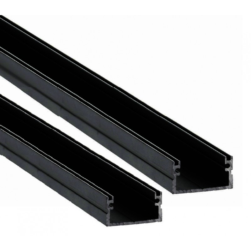 Perfil superficie aluminio anodizado Negro 20x11mm para tiras LED, 6mts (2 tramos de 3 Metros)
