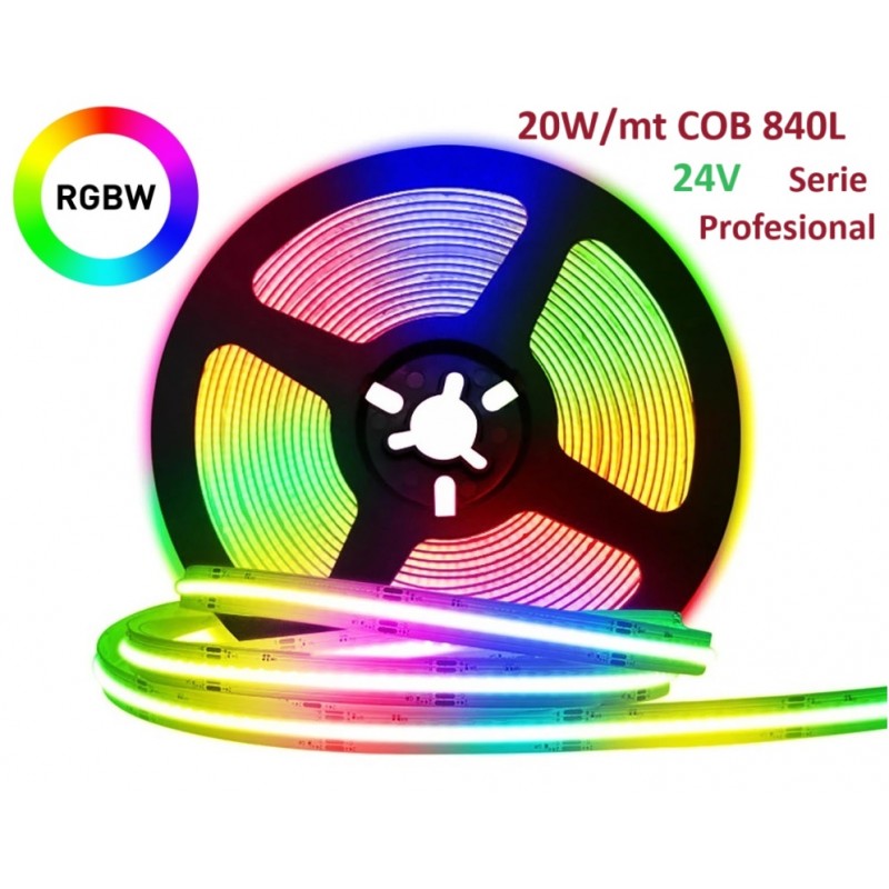 Tira LED 5 mts Flexible 24V 100W COB (840L/m) IP20 RGBW, Serie Profesional