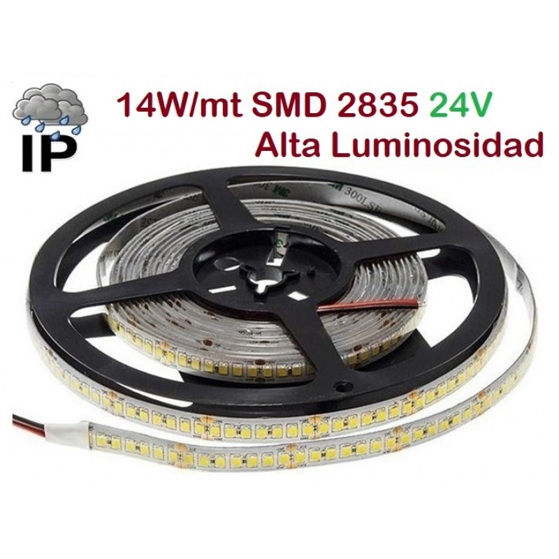 Tira LED 5 mts Flexible 24V 70W 840 Led SMD 2835 IP65 Blanco Cálido, Alta Luminosidad