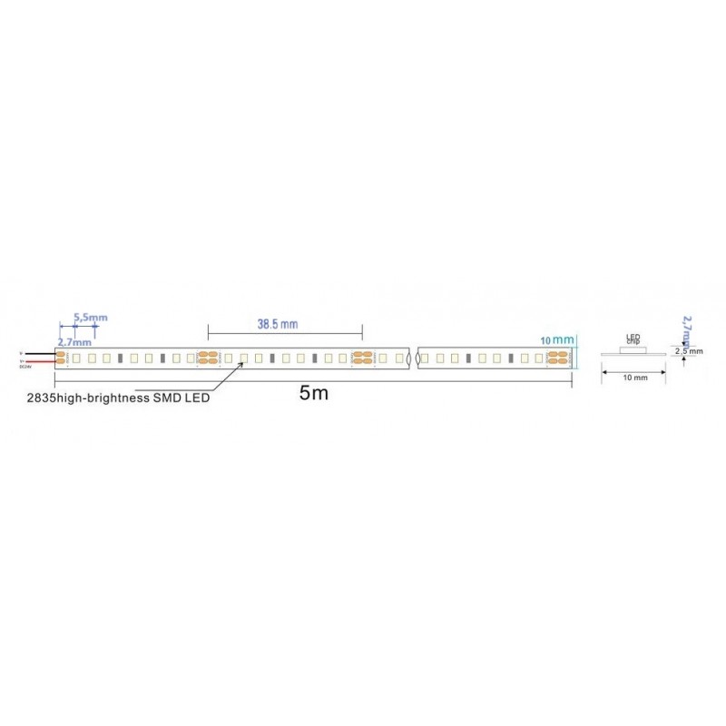 Tira LED 5 mts Flexible 24V 82,5W 910 Led SMD 2835 IP20 Blanco Frío, Serie Profesional
