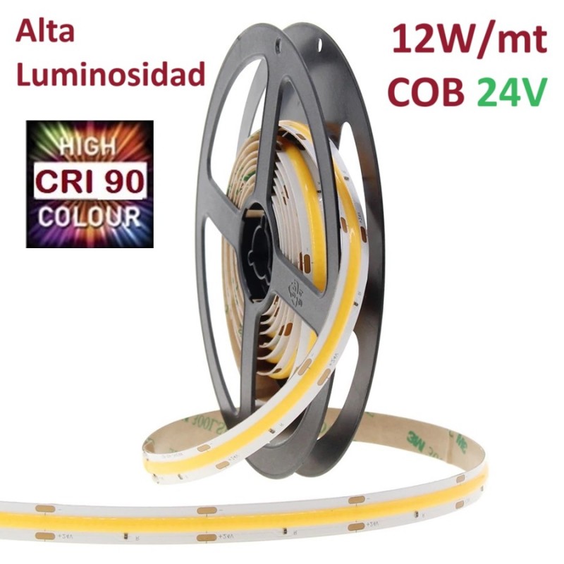 Tira LED 5 mts Flexible 24V 60W COB (320) IP20, Alta Luminosidad IRC>90